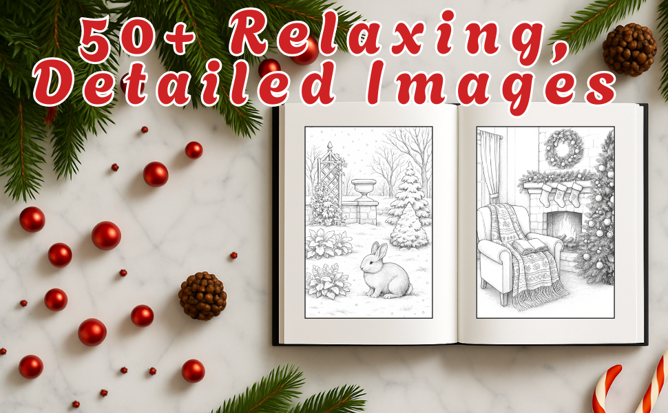 Cozy and Relaxing Coloring Pages to Relieve Stress and Anxiety. Festive and fun designs for Teens, Adults, and Seniors.